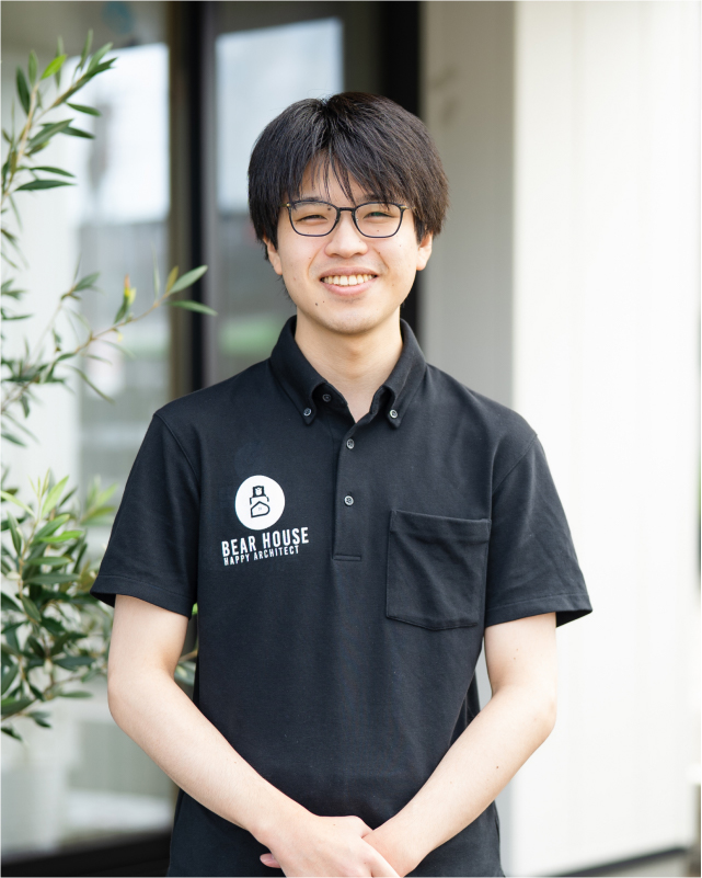 - 福岡県宗像市出身で、建築を学ぶため熊本に来ました。住宅やマンション、工場など、さまざまな設計の補佐をしております。お客様の理想に寄り添いながら、快適で心地よい空間づくりをお手伝いできれば嬉しいです。