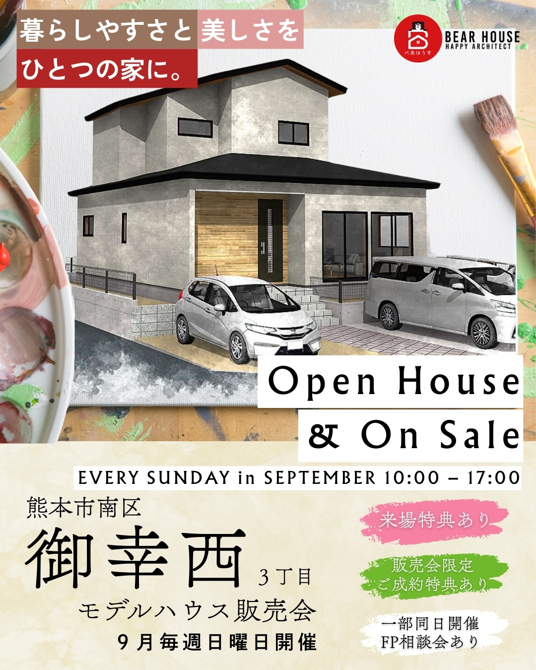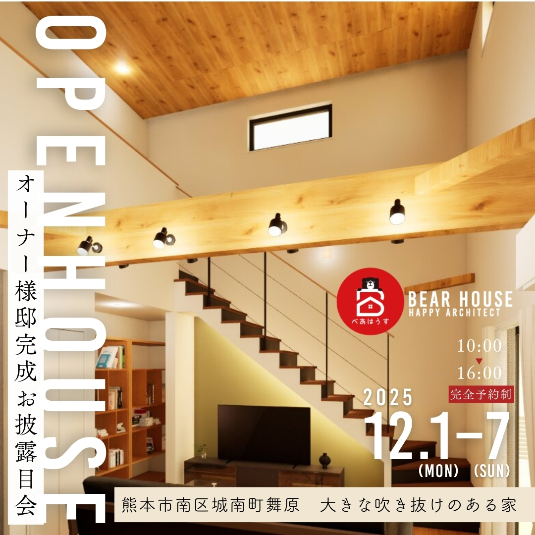 オープン御幸西モデルハウスをオープン。見た目だけでなく、暮らしやすさも大切にした住まいとして、当社の家づくりを実際に体感いただける拠点を熊本市南区御幸西に開設。
