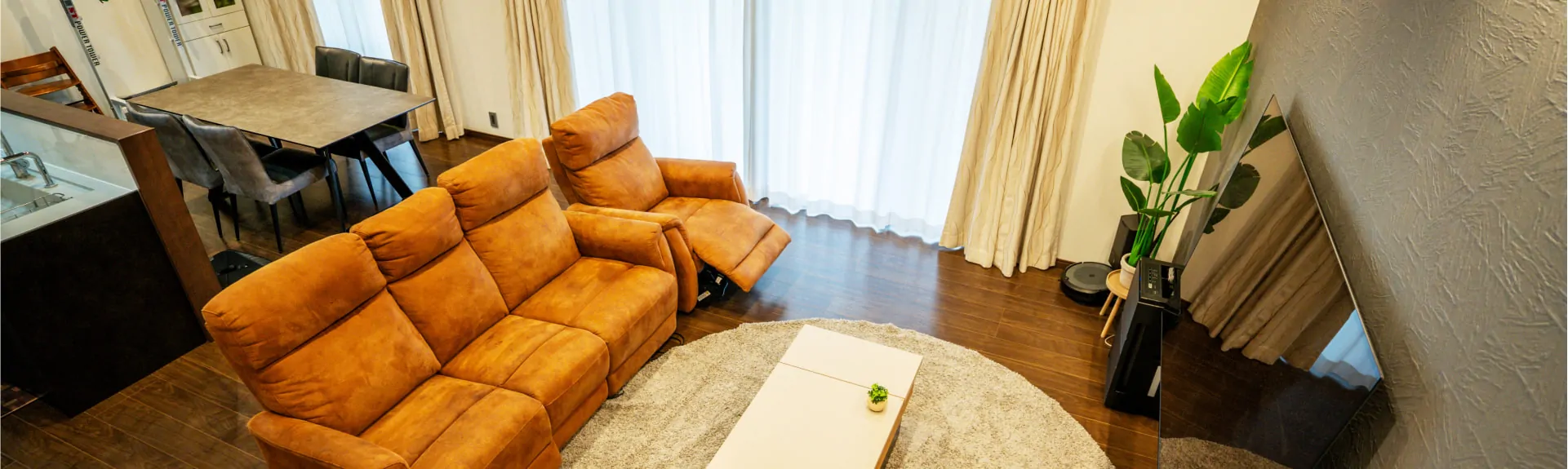住まいが手狭になったことが家づくりのきっかけだったというMさん家族。奥さまが大事にしたのは性能面。ご主人が大事にしたのは動線と暮らしやすさ。毎日過ごす住まいだからこそ、見た目だけでなく、基本的な部分を大切にしたい。そんな想いに応えたのが、長期優良住宅が標準仕様で、コストパフォーマンスにも優れていると話題のBEAR HOUSEだ。共働きでもあるM家に重要なのは、動きやすい家事動線。浴室、脱衣・洗面スペース、ランドリースペース、ファミリークローゼットを1つのスペースにまとめることで、動きをラクに。広めに設計したことで、家族5人分の洗濯物を室内に干すことも可能に。玄関を、入るとすぐにキッチンに繋がる動線もアパート時代に苦労した経験から要望したもの。「アパート時代は荷物を運ぶのも大変でした。今まで苦労したことを、この家づくりですべて改善してもらいましたね」。奥さまがこだわった性能面は、断熱等級HEAT20のG2レべル、耐震等級3を確保し、長期優良住宅を取得。リビングの窓はトリプル樹脂サッシを採用することで、さらなる断熱効果を発揮している。太陽光発電も設置しているので省エネ性も申し分ない。ほぼ毎日、施工現場に足繁く通っていたという奥さまは、「施工途中にも変更をお願いしたりして、BEAR HOUSEさんは大変だったと思います。快く対応していただきありがたかった」と大満足の様子。娘さんが生まれ、以前に増して賑やかになったというMさん家族。広々リビングで息子くん達が走り回っても、安心して見守ることができる空間は、これからも家族の未来を温かく包み込む。
