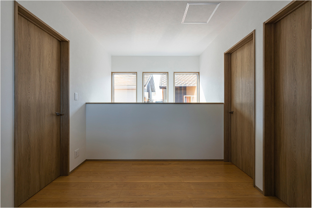 過剰な廊下、吹き抜け、化粧梁などを見直し、面積をコンパクトに設計。
