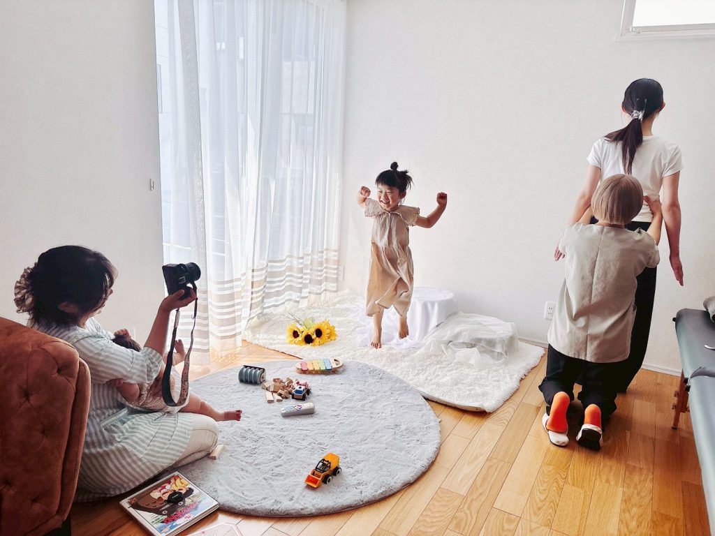 ママが整体で体をほぐしている間、託児スタッフがお子さまを見守りながら、かわいい成長の瞬間を写真におさめます。
