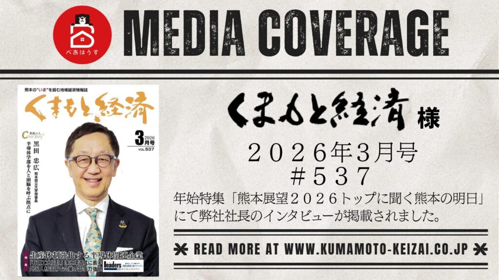 この度、地域経済誌『くまもと経済』2026年3月号の「業界navi」コーナーにて、弊社が合志市野々島にオープンいたしました「建売モデルハウス」についてご紹介いただきました。