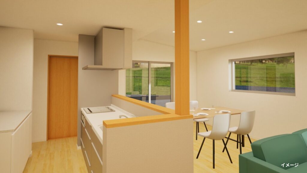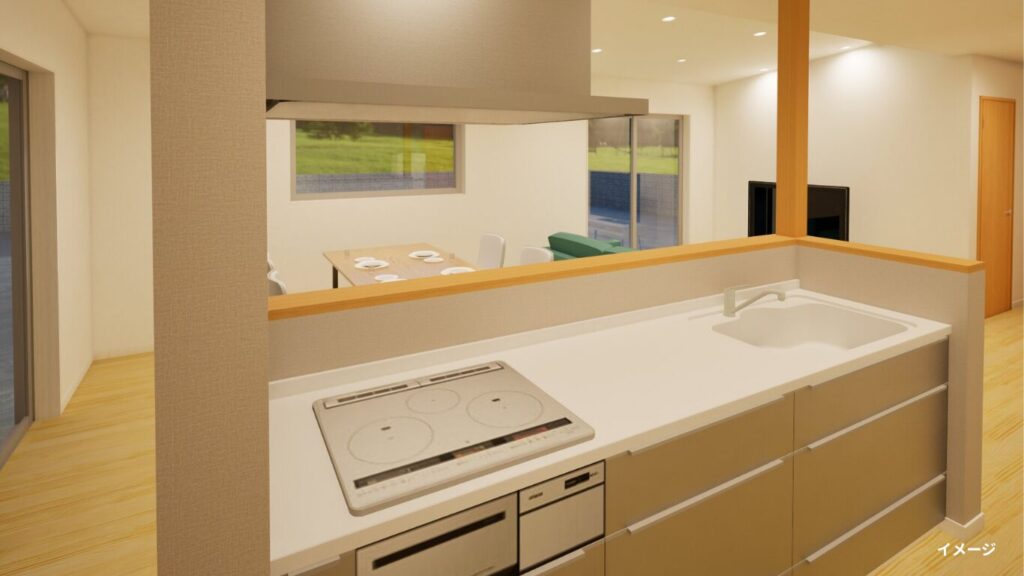料理をしながら、リビングやダイニングに目が届くキッチン。