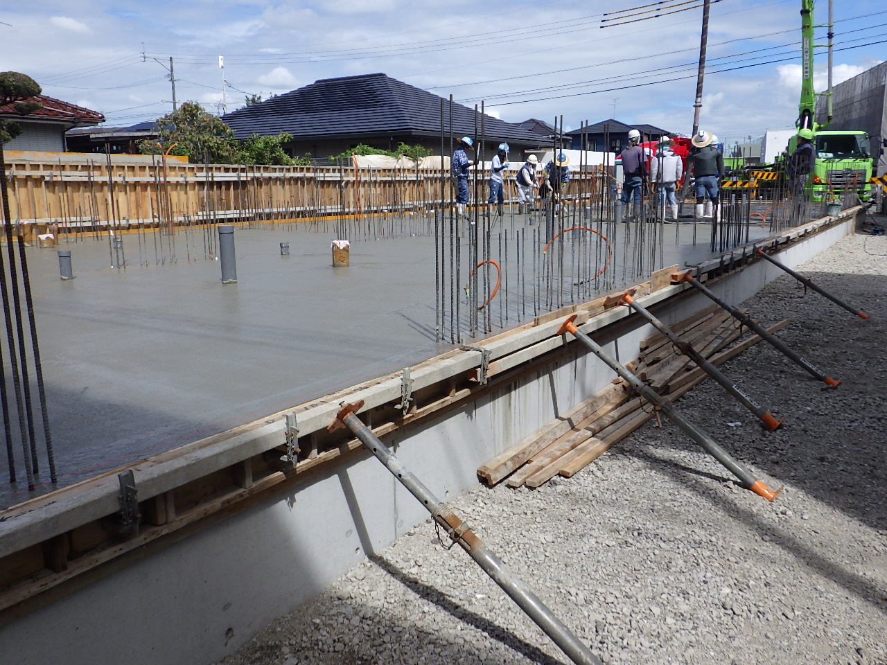 コンクリート打設とは‥👆 建築の基礎となる生コンクリート(固まっていないコンクリート)を 枠の中に流し込むことです。 練り混ぜてから打設が終わるまでの許容時間が定められています! さらに、強度が弱いため、立ち入らないようにしましょう☆