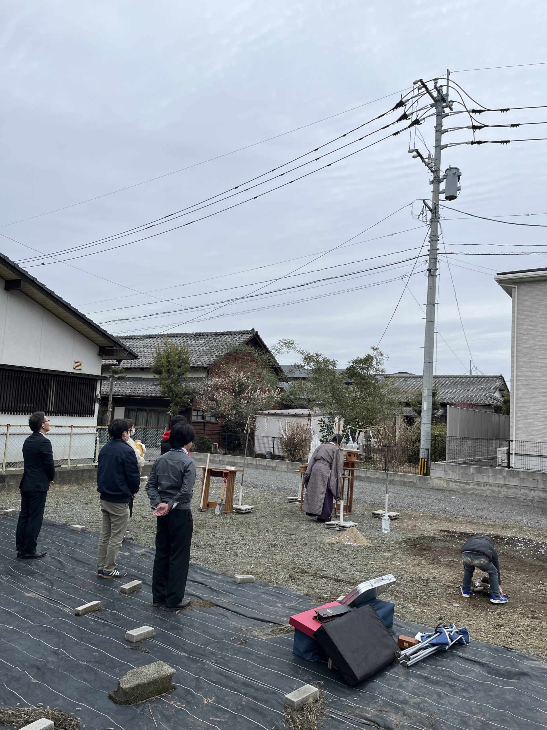 2024年2月3日、地鎮祭を執り行いました。 M様 おめでとうございます🎊🎈 家づくりの期間中に二度、神様へのご挨拶をする伝統行事があります。 それが、まず「地鎮祭」 盛砂に鍬(くわ)を入れ、真似事をする儀式があります! 土と混ざり合わさり様々な災いを退け清め、その土地の土や砂となります✨ 工事の無事と家・建物の繁栄をお祈りします🚩🚩