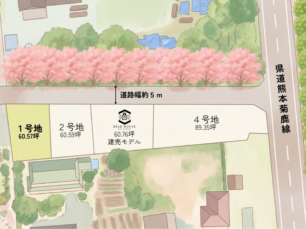 県道37号熊本菊鹿線から入った区画の中で、最も奥に位置する1区画です。