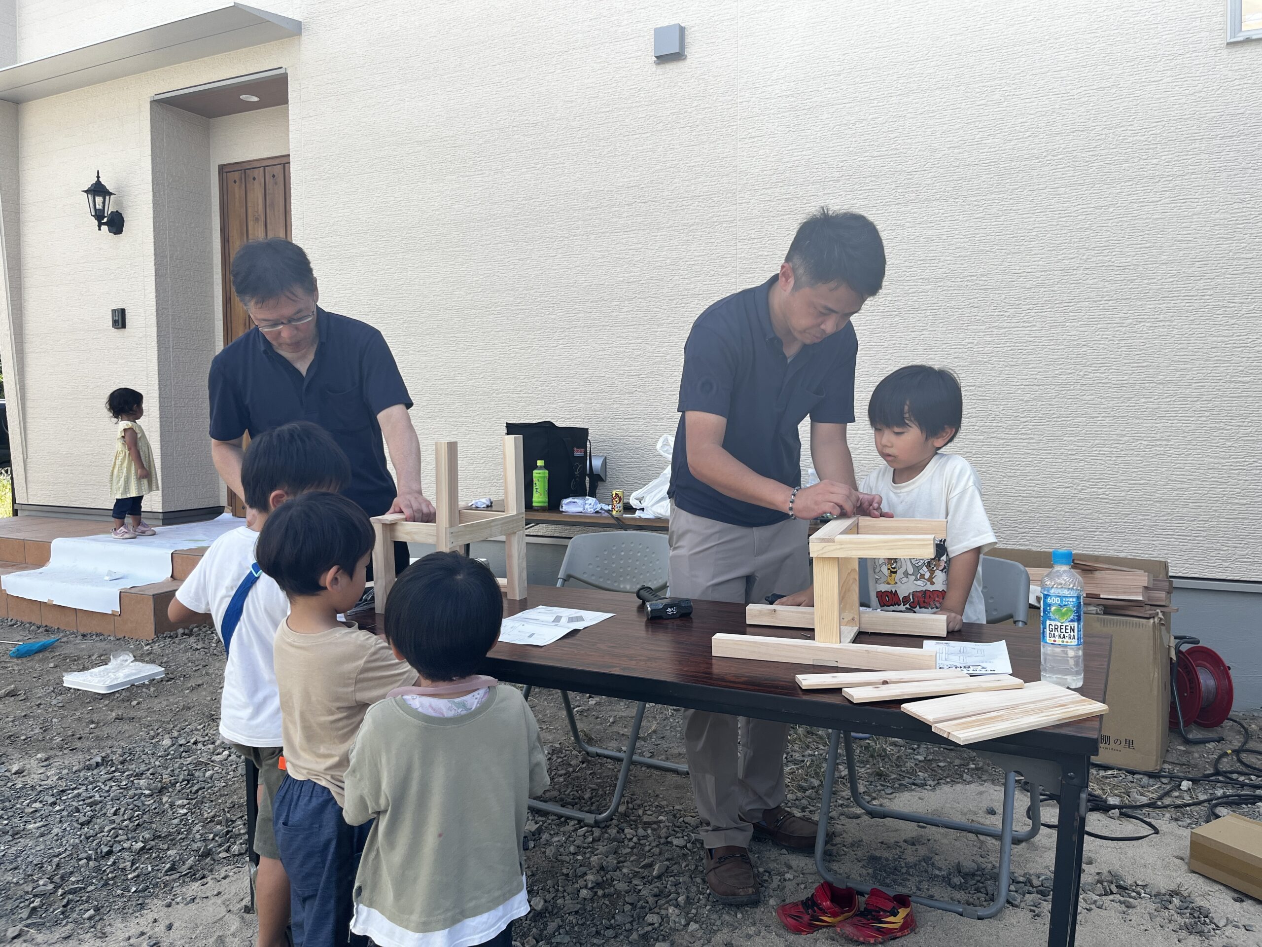 ご家族で椅子づくりの体験【ワークショップ】 参加してくれたお子さんたちも、暑い中一生懸命🔨頑張って「トントントン」 少しづつ作り上げて完成しました👏 これから、お家でたくさん使ってくださいね😊 場所は、新築完成見学会と同日に開催しました🏠✨(in熊本市東区若葉) 思い出に残る家族時間になってくれると嬉しいです~♪