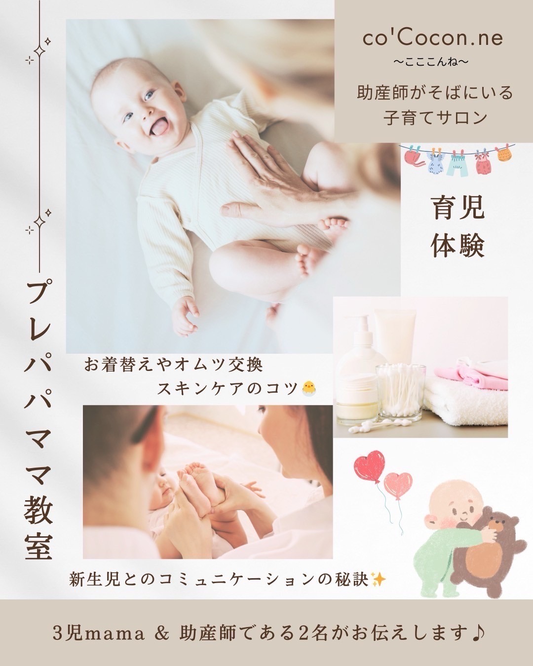 こんにちは✋2月のコラボイベントのお知らせです🛁 *主催者*助産師がそばにいる子育てサロン~こここんね~さんです。 ママや赤ちゃん、ご家族のみんなが笑顔になれる温かい居場所を目指して活動されています。 *おっぱい教室 産前産後のママをサポートされている【こでまり助産院】さんにお力添えをいただき 母乳育児の基本+授乳方法の体験の教室を行います🍀